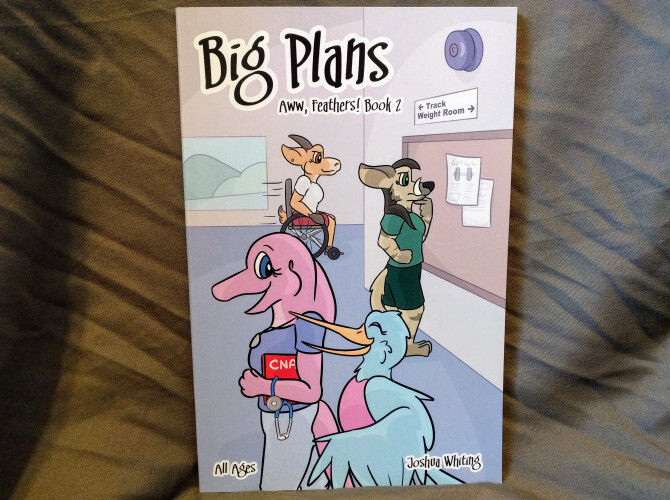 This book contains all the first seven chapters from the webcomic at awwfeathers.com, as well as exclusive bonus content not available online. It measures 7" x 10.5" and contains 74 pages.