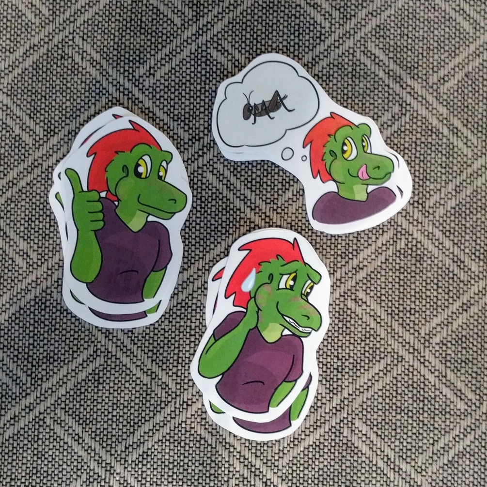 Adorn your sketchbook, laptop, phone case, or anything you choose with the cheerful face of Ine, the red crested water lizard! Choose the design you want from the dropdown. Save on shipping when you buy more than one, and save even more by choosing "All three" from the menu!